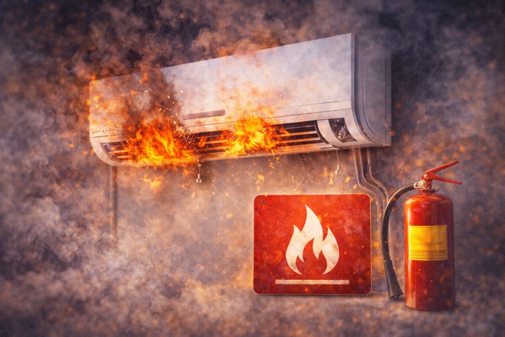 Causas, sinais de alerta, prevenção e o que fazer em caso de incêndio RESPOSTA DIRETA Sim. Ar-condicionado pode pegar fogo — e isso acontece com mais frequência do que a maioria imagina. Falhas elétricas, falta de manutenção, gás inflamável e instalações improvisadas estão entre as causas mais comuns. A boa notícia é que a grande maioria dos incêndios envolvendo ar-condicionado é completamente evitável. Por Que o Ar-Condicionado É Um Risco de Incêndio? O ar-condicionado é um dos equipamentos elétricos que mais tempo fica ligado dentro de um lar ou empresa — muitas vezes operando por 8, 12 ou até 24 horas seguidas. Esse uso intenso, combinado com instalações elétricas antigas, falta de manutenção e acúmulo de sujeira, cria condições favoráveis para o surgimento de um incêndio. Segundo o Corpo de Bombeiros de São Paulo, aparelhos de ar-condicionado figuram entre as principais causas de incêndio elétrico em edificações residenciais e comerciais no Brasil. Entender por que isso acontece é o primeiro passo para evitar que ocorra na sua casa ou empresa. As 7 Principais Causas de Incêndio em Ar-Condicionado 1. Sobrecarga Elétrica e Fiação Inadequada A causa número um de incêndios em ar-condicionado é a instalação elétrica subdimensionada. Aparelhos de ar-condicionado exigem circuito dedicado e fio com bitola específica. Quando conectados em tomadas comuns ou ramais improvisados, o fio aquece progressivamente até atingir o ponto de ignição do isolamento. 2. Acúmulo de Sujeira no Filtro e no Evaporador Filtros obstruídos forçam o motor do ventilador a trabalhar além da capacidade. O superaquecimento do motor é uma das causas mais subestimadas de incêndio em aparelhos split. Além disso, o acúmulo de poeira seca sobre componentes elétricos internos funciona como combustível adicional caso haja uma faísca. DADO IMPORTANTE!Especialistas em manutenção de ar-condicionado recomendam limpeza dos filtros a cada 15 dias em uso contínuo e revisão técnica completa a cada 12 meses. Aparelhos sem manutenção há mais de 2 anos representam risco significativamente maior. 3. Falha no Capacitor O capacitor é o componente responsável por dar a partida e manter o funcionamento do compressor e do ventilador. Com o envelhecimento, ele pode inchar, vazar óleo dielétrico ou explodir internamente — gerando calor intenso e faíscas que podem inflamar os componentes plásticos ao redor. 4. Curto-Circuito na Placa Eletrônica A placa de controle do ar-condicionado contém trilhas condutoras muito finas que podem sofrer curto-circuito por umidade, variações de tensão, insetos ou simples deterioração. Um curto na placa gera faísca e calor concentrado, podendo inflamar o próprio circuito impresso e a carcaça plástica do aparelho. 5. Gás Refrigerante Inflamável (R-32 e R-290) Os gases refrigerantes modernos, adotados em larga escala por serem mais ecológicos, apresentam grau de inflamabilidade que os modelos antigos não tinham. Em caso de vazamento próximo a uma fonte de calor ou faísca elétrica, o risco de ignição é real. Gás Refrigerante Inflamabilidade Presente Em Risco de Fogo R-22 Não inflamável Aparelhos antigos (pré-2015) Baixo R-410A Não inflamável Splits convencionais Baixo R-32 Levemente inflamável (A2L) Inverter moderno Médio — em vazamentos R-290 (propano) Altamente inflamável (A3) Modelos ecológicos premium Alto — manipulação restrita 6. Instalação Realizada por Não Profissional Instalações improvisadas — com conexões elétricas mal feitas, tubulação de cobre dobrada incorretamente ou aparelho fixado de forma instável — são responsáveis por uma parcela expressiva dos acidentes. Um fio mal emendado que apresenta resistência elétrica elevada pode aquecer por meses antes de causar um incêndio. 7. Aparelho Ligado Sem Supervisão por Longos Períodos Deixar o ar-condicionado ligado ininterruptamente por dias, especialmente em modo de aquecimento (heat pump), aumenta a probabilidade de superaquecimento de componentes envelhecidos. O risco é ainda maior em aparelhos com mais de 10 anos de uso sem revisão técnica. Sinais de Alerta: Seu Aparelho Pode Estar Em Risco Fique atento a estes sinais — qualquer um deles justifica desligar o aparelho imediatamente e chamar um técnico: Sinal O Que Pode Indicar Urgência Cheiro de queimado ou plástico aquecido Superaquecimento elétrico ou do motor IMEDIATA — desligue já Faíscas visíveis na tomada ou no aparelho Curto-circuito ou conexão com falha IMEDIATA — desligue já Disjuntor que cai repetidamente Sobrecarga ou curto interno ALTA — não religue Barulho de estalo ou chiado elétrico Arco elétrico interno ALTA Aparelho muito quente ao toque externo Ventilação obstruída ou motor sobrecarregado MÉDIA — revisão urgente Fumaça saindo da unidade interna ou externa Componente em combustão IMEDIATA — evacue e ligue 193 Cheiro de gás ou amônia Vazamento de refrigerante ALTA — ventile o ambiente ✗ NUNCA FAÇA ISSO! Se o aparelho apresentar fumaça ou chamas, nunca jogue água diretamente sobre ele — risco de choque elétrico fatal. Desligue o disjuntor geral, evacue o ambiente e acione o Corpo de Bombeiros pelo número 193. Como Prevenir: 8 Medidas Essenciais O Que Fazer Se o Ar-Condicionado Pegar Fogo Em caso de incêndio ou princípio de incêndio, siga esta sequência com calma e rapidez: i TIPO DE EXTINTOR CORRETO Para incêndios elétricos (classe C), use extintor de CO2 ou pó BC/ABC. Extintores de água são proibidos em incêndios elétricos. Verifique se o extintor do seu imóvel está dentro da validade — a recarga é obrigatória a cada 1 ano ou após qualquer uso. Perguntas Frequentes Ar-condicionado ligado dormindo é perigoso? Em aparelhos bem mantidos e com instalação elétrica adequada, o risco é baixo. O perigo aumenta significativamente em aparelhos com manutenção atrasada, fiação improvisada ou c