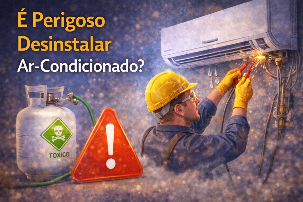 Conheça os riscos reais, o que diz a lei e como se proteger RESPOSTA DIRETA Sim, desinstalar um ar-condicionado pode ser perigoso — especialmente se você manusear o gás refrigerante sem treinamento. Há riscos elétricos, físicos e químicos envolvidos. Entenda cada um deles antes de agir. Por Que Essa Pergunta É Importante? Muitos proprietários subestimam os riscos envolvidos na desinstalação de um ar-condicionado. O aparelho parece simples por fora, mas internamente combina tensão elétrica, gás pressurizado sob temperatura extrema e componentes pesados. Juntos, esses fatores criam cenários de risco que merecem atenção antes de qualquer intervenção. Este artigo apresenta os principais perigos de forma clara e objetiva, para que você tome a decisão mais segura possível. Quais São os Riscos Reais? 1. Risco Elétrico O ar-condicionado é alimentado por circuito dedicado de 220V (na maioria dos modelos split). Mesmo com o aparelho desligado no controle remoto, o circuito continua energizado até que o disjuntor exclusivo seja desativado no quadro elétrico. 2. Risco com o Gás Refrigerante Este é o perigo mais subestimado e também o mais regulamentado. Os gases refrigerantes modernos (R-410A e R-32) apresentam múltiplos riscos: Gás Risco Principal Classificação R-22 (aparelhos antigos) Destruição da camada de ozônio + asfixia ODP alto — proibido descartar R-410A (split convencional) Asfixia em ambientes fechados GWP 2.088 — risco ambiental grave R-32 (inverter moderno) Levemente inflamável + asfixia A2L — risco de ignição R-290 (propano — ecológico) Altamente inflamável A3 — proibido manusear sem EPI ✗ NUNCA FAÇA ISSO!Jamais desconecte as tubulações de cobre sem antes realizar o pump down (recuperação do gás para a unidade externa). O gás sob pressão pode causar queimaduras criogênicas (-40°C), congelamento dos pulmões se inalado e, no caso do R-32, risco de explosão. 3. Risco Físico e de Queda A unidade externa de um split pesa entre 25 e 50 kg e costuma estar fixada em altura. A unidade interna, embora mais leve, está presa a um suporte parafusado na parede. Sem o apoio correto durante a remoção, qualquer uma das peças pode cair. 4. Risco Ambiental e Legal O lançamento de gás refrigerante na atmosfera é crime ambiental no Brasil, previsto na Lei 9.605/1998 e na Resolução CONAMA 340/2003. A responsabilidade recai sobre o proprietário do imóvel, não apenas sobre quem realizou o serviço. i MULTA PREVISTA!O descarte irregular de gás refrigerante pode resultar em multa de R$ 500 a R$ 50.000, além de responsabilização criminal em casos de reincidência. Somente técnicos certificados pelo IBRAC estão autorizados a recuperar o gás. O Que Você Pode Fazer com Segurança Nem tudo na desinstalação exige um técnico. Após o gás ser recuperado por um profissional certificado, você pode realizar as etapas mecânicas com segurança: Etapa Pode Fazer Sozinho? Condição Desligar o disjuntor no quadro elétrico Sim Sempre — primeiro passo obrigatório Desconectar os cabos elétricos Sim Somente com o disjuntor desligado Remover o painel e filtros da unidade interna Sim Sem restrições Retirar a unidade interna do suporte Sim Com cuidado para não danificar o evaporador Remover o suporte de parede Sim Ferramenta básica Retirar a unidade externa Sim, com ajuda Apenas após o pump down e com apoio Desconectar as mangueiras de cobre (gás) NÃO Exige pump down por técnico certificado Recuperar ou recarregar o gás refrigerante NÃO Ilegal sem certificação IBRAC Medidas de Segurança Essenciais Se você for realizar as etapas permitidas, siga sempre estas precauções: Quando É Obrigatório Chamar um Técnico? ! SEMPRE QUE HOUVER GÁS NO SISTEMASe o aparelho está funcionando — mesmo que mal — há gás pressurizado no circuito. Nesse caso, a presença de um técnico certificado para o pump down é obrigatória por lei e por segurança, sem exceção. Além da recuperação do gás, recomenda-se contratar um profissional nos seguintes cenários: Perguntas Frequentes O gás refrigerante faz mal se eu respirar um pouco? Em pequenas quantidades ao ar livre, o risco é baixo. Porém, em ambientes fechados, mesmo uma quantidade pequena de gás pode deslocar o oxigênio e causar tontura, desmaio ou, em casos extremos, morte por asfixia. Jamais libere gás em ambientes fechados. E se o aparelho já estiver quebrado e sem gás? Se houver confirmação técnica (por manômetro) de que o sistema está sem pressão, o risco do gás é eliminado. Mesmo assim, os riscos elétrico e físico permanecem, e recomenda-se cautela em todas as etapas. Posso desinstalar o ar-condicionado portátil sozinho? O ar-condicionado portátil não possui circuito de gás aberto — o sistema é selado de fábrica e não requer pump down. Você pode desconectá-lo da tomada e removê-lo sem riscos adicionais. Nunca perfure ou desmonte o circuito interno. Quanto custa contratar só o pump down? Na maioria das cidades brasileiras, o serviço de pump down (recuperação do gás + desconexão das mangueiras) custa entre R$ 150 e R$ 250, dependendo da região e do porte do equipamento. É o menor custo da operação — e o mais importante. Conclusão Desinstalar um ar-condicionado pode ser perigoso, mas os riscos são gerenciáveis quando você conhece os limites do que pode e do que não pode fazer. A regra de ouro é simples: ✓ REGRA DE OURO Contrate um técnico certificado para recuperar o gás (pump down). Depois disso, você pode realizar com segurança a desmontagem mecânica do aparelho — economizando na mão de obra sem abrir mão da segurança e da legalidade. O custo de um pump down profissional é pequeno perto das consequências de um acidente, de um equipamento danificado ou de uma multa ambiental. Segurança em primeiro lugar — sempre. i NOTA Este artigo tem caráter informativo e não substitui a orientação de um profissional h