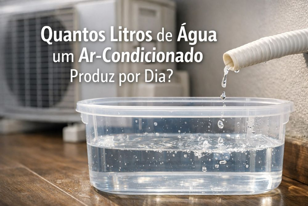 A resposta por BTU, umidade e o que fazer com essa água Atualizado em março de 2026 • Leitura: 5 minutos O ar-condicionado não produz água do nada. Ele remove a umidade que já existe no ar do ambiente — e essa umidade vira água líquida na bandeja de condensado, que escoa pelo dreno. A quantidade produzida por dia varia bastante. Depende do BTU do aparelho, da umidade relativa do ar e de quantas horas ele fica ligado. Este artigo responde a pergunta de forma direta, com números reais por modelo e situação. 💧 Resposta rápida: um ar-condicionado de 9.000 BTUs produz entre 3 e 8 litros de água por dia. Um de 12.000 BTUs, entre 5 e 12 litros. Em dias muito úmidos, esses valores podem ser maiores. Como o ar-condicionado gera água O processo é o mesmo que embaça um copo de água gelada num dia quente: vapor d’água do ar em contato com uma superfície fria se condensa e vira líquido. A serpentina do aparelho opera entre 5°C e 12°C — bem abaixo do ponto de orvalho do ar em qualquer dia típico de verão brasileiro. Toda a umidade que passa por ela condensa, cai na bandeja e sai pelo dreno. Dois fatores definem o volume produzido: a capacidade de resfriamento (BTU) e a umidade relativa do ar no momento. Quanto mais úmido o dia, mais água o aparelho extrai. Tabela: litros produzidos por dia por BTU Capacidade Uso (h/dia) Dia seco (UR ~50%) Dia normal (UR ~65%) Dia úmido (UR ~85%) 7.500 BTUs 8h 1,5 – 2L 3 – 4L 5 – 6L 9.000 BTUs 8h 2 – 3L 4 – 6L 7 – 9L 12.000 BTUs 8h 3 – 5L 6 – 9L 10 – 14L 18.000 BTUs 8h 4 – 7L 8 – 13L 14 – 20L 24.000 BTUs 8h 6 – 9L 11 – 16L 18 – 26L Estimativas para 8h de uso diário. Valores reais variam conforme temperatura, ocupação e estado de manutenção do aparelho. O que aumenta ou diminui a produção de água Umidade relativa do ar: é o fator mais importante. No Norte e Nordeste, com UR frequentemente acima de 80%, o aparelho pode produzir o dobro do que produziria em dias secos de São Paulo ou Brasília. Horas de uso: os valores da tabela são para 8h. Um aparelho ligado 14h por dia (como em escritórios ou salões) produz proporcialmente mais. Um de 12.000 BTUs ligado 14h num dia úmido pode passar de 20 litros. Filtragem e manutenção: filtro sujo reduz o fluxo de ar sobre a serpentina, que congela. Quando descongela, produz um volume concentrado de água de uma vez — o que causa o vazamento típico. Filtro limpo = drenagem constante e sem transbordamento. Temperatura de operação: aparelho configurado em temperaturas muito baixas (18°C–19°C) força a serpentina a operar mais fria, condensando mais umidade. Configurações entre 23°C e 25°C produzem menos água e consomem menos energia. Quando a produção de água vira problema Produzir água é normal e esperado. O problema só aparece quando o volume supera a capacidade de drenagem. Isso acontece em três situações: ⚠️ Se o aparelho está pingando dentro do ambiente: desligue, limpe o filtro e verifique se o dreno externo está escorrendo. Resolver esses dois pontos elimina o problema em mais de 70% dos casos. Dá para reaproveitar a água do ar-condicionado? Sim — com restrições. A água do condensado é destilada, ou seja, não tem cal, cloro ou minerais. Mas não é potável: passa pela serpentina e bandeja que acumulam biofilme, fungos e resíduos. Usos adequados: 🚫 Não usar para: beber, cozinhar, higiene pessoal ou encher aquário com peixes sensíveis. Apesar de destilada, pode conter contaminantes biológicos da serpentina. Perguntas rápidas É normal o dreno gotejar muito? Sim. Em dias úmidos, um gotejamento contínuo e abundante é sinal de que o aparelho está funcionando corretamente — removendo umidade do ar como deve. Aparelho que não goteja nada está com problema? Não necessariamente. Em dias secos (UR abaixo de 40%), a produção de condensado cai muito e o gotejamento pode ser mínimo ou intermitente. Muito vapor saindo da condensadora lá fora é problema? Não é a água do dreno — é apenas o ar quente expelido pelo sistema de resfriamento. O vapor aparece quando o ar externo está frio e úmido, condensando o calor liberado. Normal. O ar-condicionado seca o ar demais? Pode sim. Em ambientes pequenos e bem vedados com aparelho de alta potência ligado por muitas horas, a UR pode cair abaixo de 40% — o que resseca mucosas e pele. Solução simples: um copo com água dentro do ambiente ou um umidificador de ar pequeno. Resumo ✅ O que saber em 4 pontos: 1. Um ar de 9.000 BTUs produz 4 a 6 litros por dia num dia normal 2. Em dias muito úmidos, esse volume pode dobrar 3. Gotejar é normal — o problema é quando a água vai para dentro, não para fora 4. A água do condensado pode ser reaproveitada para regar plantas e limpar