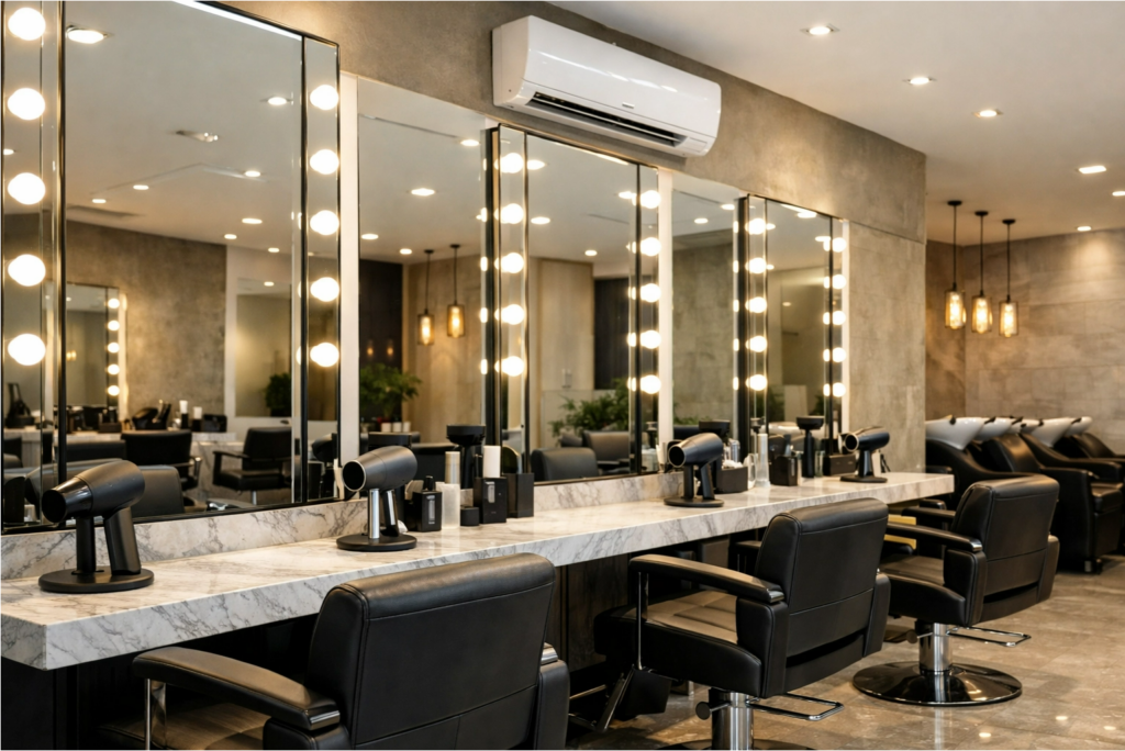 Entenda o que acontece no salão de beleza — com embasamento técnico Atualizado em março de 2026 • Leitura: 11 minutos É uma cena comum em salões de beleza: o ar-condicionado está ligado, a temperatura parece controlada, mas o aparelho começa a pingar água — às vezes em volume considerável, às vezes com formação de gelo na serpentina. O dono do salão troca o técnico, refaz o dreno, aumenta a potência do aparelho. O problema volta. A causa raramente é o aparelho. É o ambiente. Salões de beleza criam uma combinação de condições termodinâmicas que nenhum outro ambiente residencial ou comercial replica — e entender essa dinâmica é o ponto de partida para resolver o problema de vez. Este artigo explica o que acontece fisicamente dentro do ar-condicionado num ambiente com uso intenso de secadores, chapinhas e produtos químicos, e o que você precisa fazer para controlar o problema. 📌 Resposta direta: sim, o vapor gerado por secadores e pranchas aumenta significativamente a umidade relativa do ar. Isso força o ar-condicionado a condensar muito mais água do que foi projetado para drenar — e o resultado é o vazamento. Mas esse é apenas o começo do problema. O que você vai encontrar neste artigo 1. Como o Ar-Condicionado Lida com a Umidade Para entender o problema, é preciso entender dois conceitos físicos básicos: temperatura de ponto de orvalho e carga latente de calor. Temperatura de ponto de orvalho O ar sempre contém vapor d’água em suspensão. A quantidade máxima de vapor que o ar consegue reter depende da temperatura: ar quente retém mais; ar frio retém menos. Quando o ar úmido entra em contato com uma superfície cuja temperatura está abaixo do chamado ponto de orvalho, o vapor se condensa — vira água líquida. A serpentina do ar-condicionado opera entre 5°C e 12°C. Em condições normais de umidade (50% a 60% de umidade relativa), o ponto de orvalho fica em torno de 10°C a 15°C — próximo, mas manejável. O aparelho condensa uma quantidade previsível de água, o dreno dá conta e tudo funciona. 🌡️ Conceito-chave: ponto de orvalho é a temperatura na qual o vapor d’água presente no ar começa a se condensar em superfície fria. Quanto maior a umidade relativa do ar, mais alto é o ponto de orvalho — e mais água o ar-condicionado precisa remover. Carga sensível vs. carga latente Um ar-condicionado lida com dois tipos de calor simultaneamente: Carga sensível: é o calor que você mede com um termômetro. Reduzir a temperatura do ar de 30°C para 24°C é trabalho sensível. O aparelho faz isso comprimindo e expandindo o gás refrigerante. Carga latente: é a energia necessária para mudar o estado físico da água — de vapor para líquido. Condensar 1 grama de vapor d’água libera 2.260 joules de calor que o aparelho precisa absorver e jogar para fora. Isso não aparece no termômetro, mas representa trabalho real para o compressor. Em ambientes de baixa umidade, a carga latente é pequena. Em salões de beleza com secadores ligados, ela pode representar 40% a 60% de toda a carga térmica que o aparelho precisa vencer — uma proporção que a maioria dos projetos de climatização residencial e comercial simples nunca considera. 2. O que o Secador Faz com o Ar do Salão Um secador profissional de cabelo opera em temperaturas entre 60°C e 110°C e movimenta volumes de ar de 70 a 120 litros por minuto. Quando aquece o cabelo úmido, evapora água que vai direto para o ar do ambiente. Um secador profissional em uso intenso pode evaporar entre 100 e 200 ml de água por hora. Equipamento Temperatura de operação Vapor gerado (est.) Impacto na umidade Secador profissional 60°C a 110°C 100–200 ml/hora Alto Chapinha / prancha 180°C a 230°C 50–100 ml/hora Médio Babyliss / modelador 150°C a 210°C 30–80 ml/hora Médio Vaporizador capilar 40°C a 60°C (vapor) 300–500 ml/hora Muito alto Pessoa em repouso — 40–60 ml/hora Baixo Fonte: estimativas baseadas em dados de evaporação capilar e especificações técnicas de fabricantes de equipamentos profissionais. Exemplo prático: um salão com 4 cadeiras em uso simultâneo — 4 secadores + 2 chapinhas + 6 clientes — pode estar lançando entre 700 ml e 1.200 ml de vapor d’água no ar a cada hora. Em 8 horas de funcionamento, isso representa entre 5,6 e 9,6 litros de água adicionados ao ar do ambiente por dia. 💧 Para referência: o mesmo salão de 30m² sem os secadores produziria talvez 300 ml de vapor por hora (respiração + transpiração das pessoas). Com os equipamentos, o volume é até 4 vezes maior. 3. Por que a Serpentina Congela — e Depois Pinga Aqui está o mecanismo físico completo do problema: 🧊 Sinal característico do congelamento: o aparelho para de resfriar mesmo ligado (o gelo bloqueia o fluxo de ar), depois começa a pingar muito quando o gelo derrete. Esse ciclo se repete várias vezes ao longo do dia. O papel dos produtos químicos Além da umidade, salões trabalham com produtos que liberam compostos químicos no ar: formol (progressivas), amônia (colorações), queratina em pó e sprays de fixação. Esses compostos são ácidos ou alcalinos e, ao se depositarem na serpentina misturados à umidade condensada, formam solução corrosiva que ataca as aletas de alumínio ao longo do tempo. O resultado prático é duplo: a serpentina perde eficiência térmica (camada de resíduo atua como isolante) e começa a apresentar microfissuras que podem causar vazamento de gás refrigerante — um problema muito mais caro que o vazamento de água. 4. A Carga Térmica Real de um Salão de Beleza Um erro comum é dimensionar o ar-condicionado de um salão como se fosse um escritório do mesmo tamanho. As cargas são completamente diferentes: Fonte de calor Escritório 30m² Salão 30m² Diferença Pessoas (6 presentes) ~600W ~600W Igual Equipamentos elétricos ~400W ~2.400W +2.000W Carga latente (vapor) ~200W ~900W +700W Ilumina