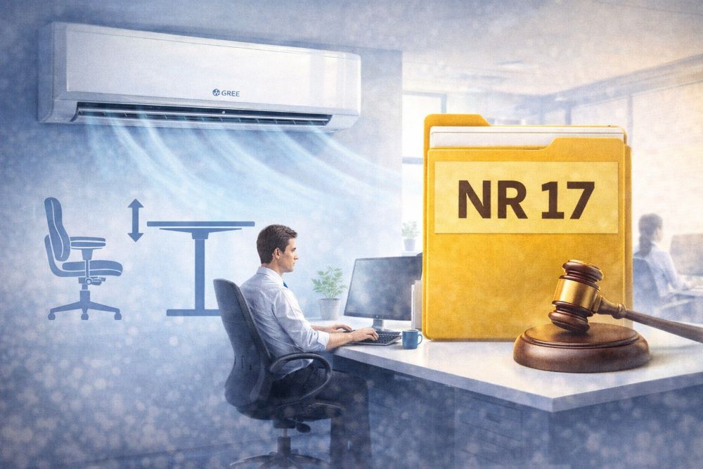 A NR 17 (Norma Regulamentadora nº 17), que trata de ergonomia no ambiente de trabalho, estabelece parâmetros claros sobre as condições de conforto térmico — incluindo o uso e a regulagem do ar-condicionado nos postos de trabalho. Descumprir essas diretrizes pode gerar penalidades para empresas e, mais importante, prejudicar a saúde dos trabalhadores.